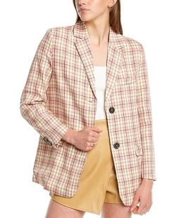 - Design details: notched lapel, two front flap pockets and button accents at cuffs