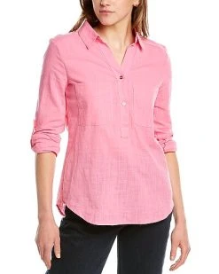 - Design details: spread collar, dual chest pockets, and roll-up cuffs