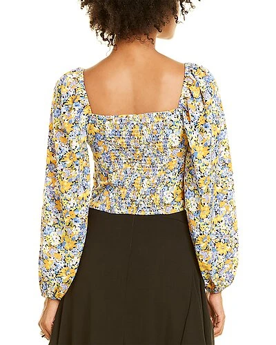 - Design details: self-tie center bust, elasticized shoulders and cuffs, and smocked back bodice