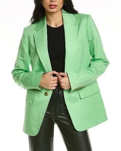 - Ridley Linen-Blend Jacket in agave with notch lapel, button cuffs, and two front pockets