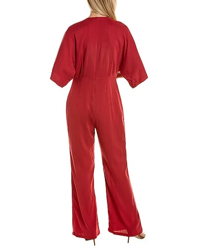 - Rylee Jumpsuit in camel with kimono sleeves, side seam pockets, and elastic waistband