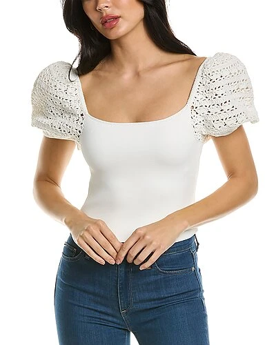 - Caley Crop Top in soft white with crocheted puff sleeves