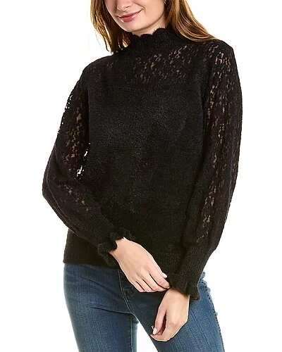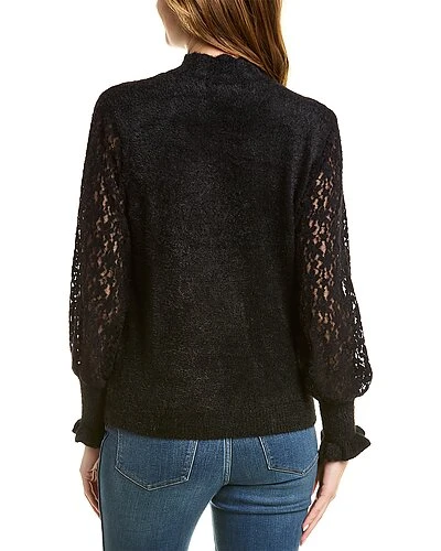 - Design details: lace yoke and sleeves, mock neck