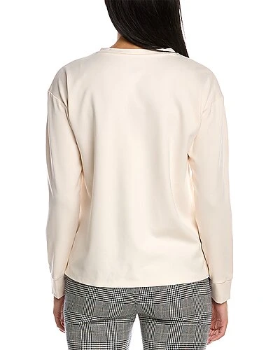 - Serenity Top in Anne white with perforated faux leather front and dropped-shoulder sleeves