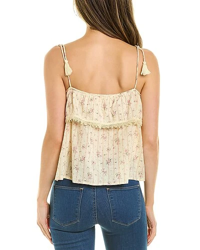 - Ruffle Top in cream with eyelet fringe and tie spaghetti straps