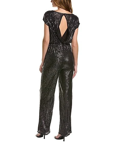 - Sequin Jumpsuit in gunmetal with vented back and elasticized waist