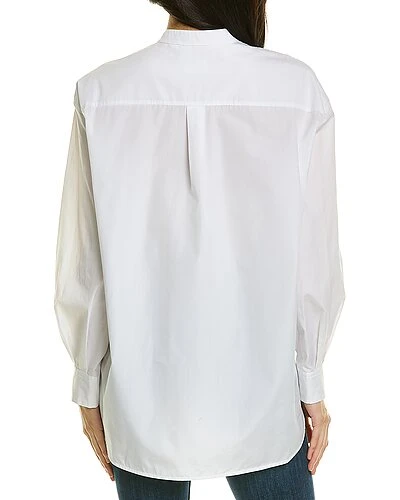 - Vintage Motif Oversized T-Shirt in white with mandarin collar and button cuffs