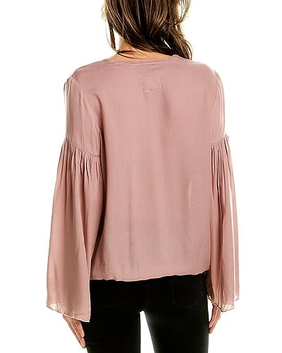 - Heirloom Gauze Blouse in antique rose with shirred flare sleeves and drawstring hem