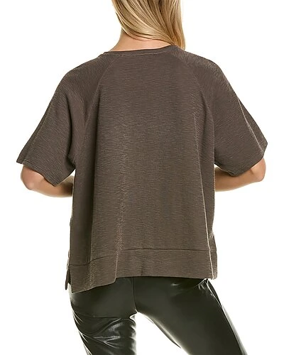 - Slubby Rib Knit Crewneck Top in rye with raglan elbow-length sleeves and slits at hem