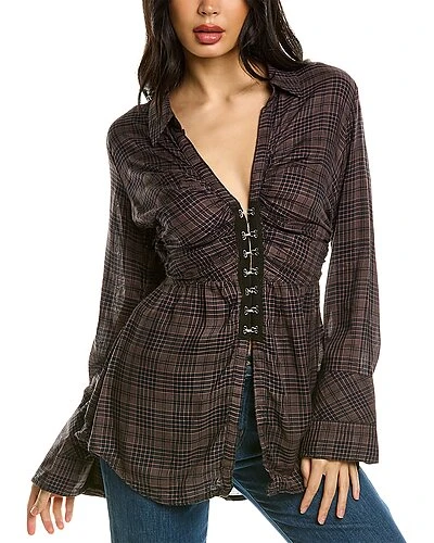 - Catalynn Remade Shirt in black combo with spread collar, cinched waist, inverted pleating and snap cuffs