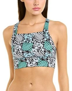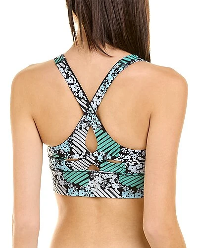 - In Your Corner Print Bra in daisy check with racerback, cutout accents, and moisture wicking