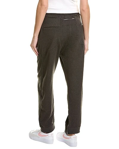 - Nothing But Sweats Pant in dark grey with smocked drawstring waist, dual front pockets, zippered back waistband pocket and zippered cuffs