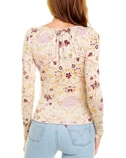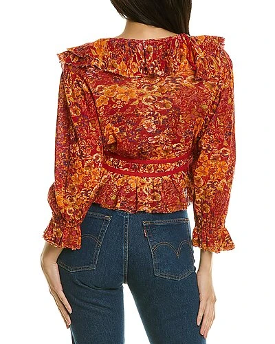 - Rudi Ruffle Top in cherry combo with V-neck, ruffle trim and elasticized flare cuffs