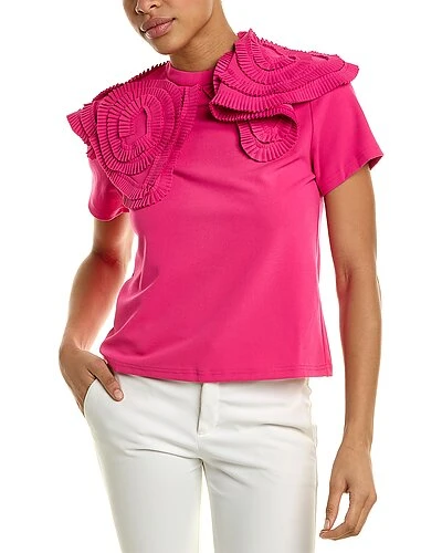 - Accordion Pleated Ruffle Top in fuchsia with crepe design