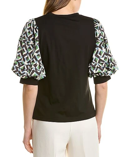 - Elbow Sleeve Top in black with contrast balloon sleeves