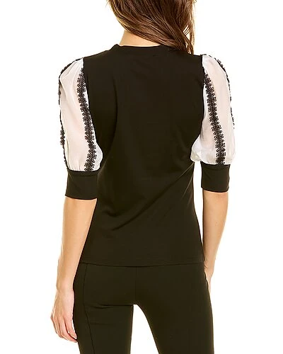 - Flower Trim Top in black and white with elbow-length contrast sleeves