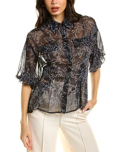 - Puff Sleeve Sheer Top in navy with elbow-length sleeves