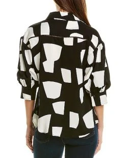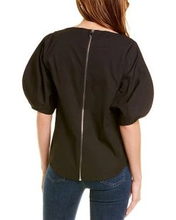 - Sheer Puff Sleeve Top in black with pocket flap details