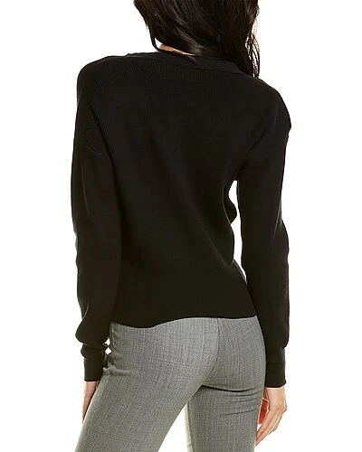 - Wrap Knit Sweater Top in black with rib knit design and dropped-shoulder sleeves