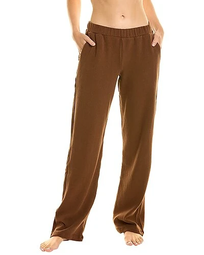 - Easy Wear Pant in dark brown with elasticized waistband, side pockets, and brushed lining