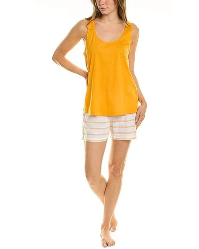 - Laura Short Pajama in sunny stripe with round neck tank, shorts with elastic waist and corded drawstring