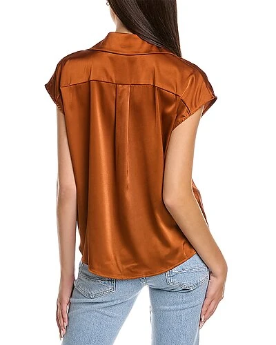 - Design details: satin design, box pleat at back, tie front, and high-low hem