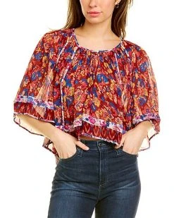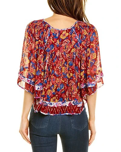- Design details: semi-sheer design, shirring details and flutter sleeves