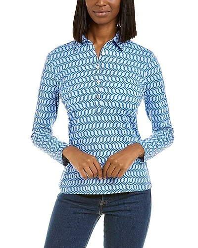 - Lauderdale Catalina Cloth Polo Shirt in navy & tan & blue mini Aegean link with spread collar and 3/4-length sleeves
