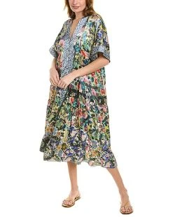 - Chelsea Gardens Silk Kimono in multicolor with tiered design