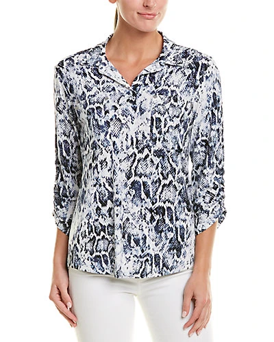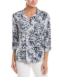 - Design details: spread collar, dual chest pockets, 3/4-length ruched sleeves