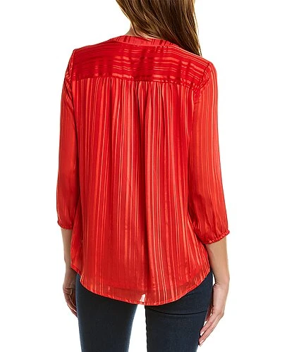 - Design details: shadow stripe design, 3/4-length sleeves, elasticized cuffs, and pleat front