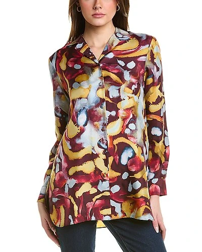 - Jones Silk Blouse in antique ruby multicolor with notch collar and button cuffs