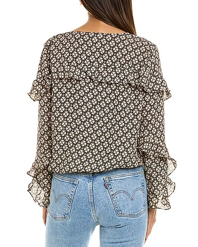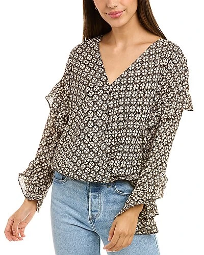 - Surplice Blouse in black & beige four leaf clover with ruffle sleeves and elasticized hem