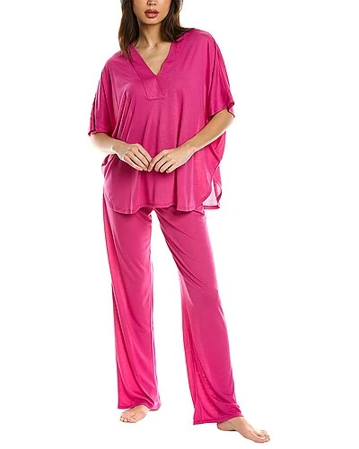 - Design details: Congo pajama set, V-neck, short sleeves, side slits, drawstring waist pant