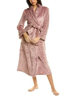 - Cashmere Fleece Robe in nude blush with plush design, shawl lapel, two front pockets, and tie-sash at waist
