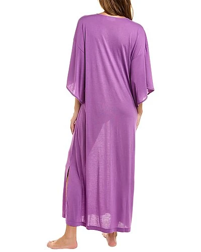 - Congo Caftan in wisteria purple with kimono sleeves and side slits at hem