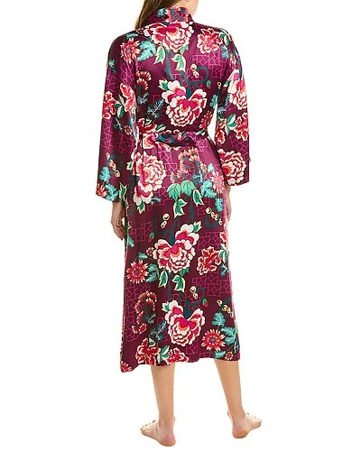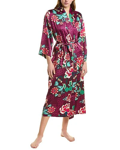 - Kasumi Satin Robe in mulberry multicolor with dual side seam pockets and self-tie waist sash