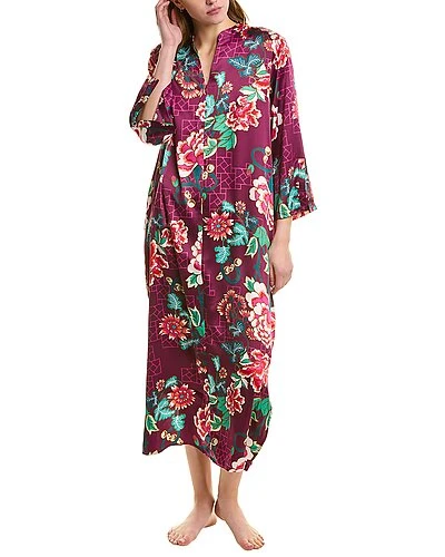 - Kasumi Satin Zip Caftan in mulberry multicolor with split neckline, split cuffs and side slits at hem