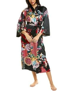 - Royal Garden Robe in black multicolor with open front and side seam pockets