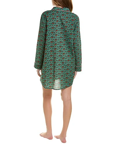 - Holly Jolly Hathi Silk-Blend Night Shirt in green with 6 buttons