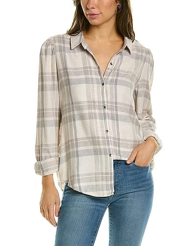 - Long Sleeve Chrissy Shirt in stone plaid with spread collar and button cuffs
