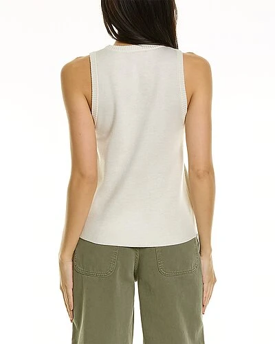 - Isla Reversible Cashmere-Blend Sweater Tank in stone with ribbed trim