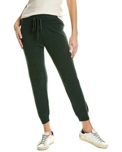 - Maribel Cashmere-Blend Sweater Pant in dark pine with shaker rib design and elasticized drawstring waistband