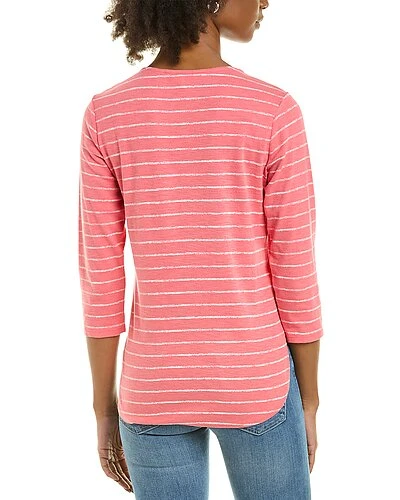 - Ashby Isles Seaside Stripe T-Shirt in light pomodoro with 3/4-length sleeve and vented curved hem