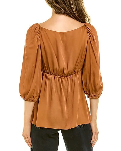 - Impressives Silk-Blend Top in nutmeg with surplice neckline and elbow-length puff sleeves