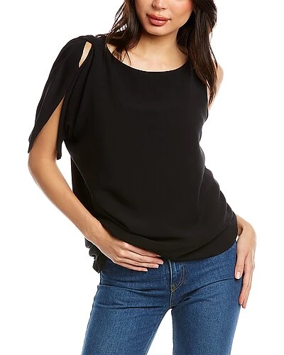 - Sunset Top in black with bateau neck and asymmetric shoulder