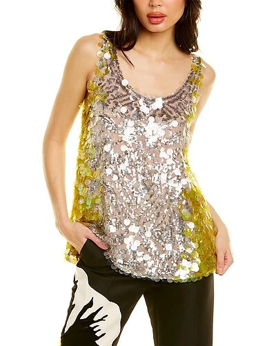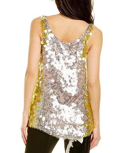 - Sequin Silk Blouse in poudre & silver & giallo with two-tone sequined design