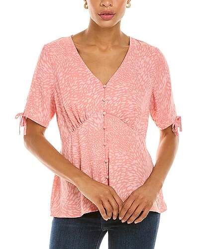 - Button Front Whisper Floral V-Neck Blouse in cool melon with V-neck, shirred bust and self-tie cuffs