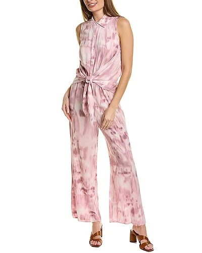 - Collared Watercolor Jumpsuit in corsage pink with spread collar, self-tie front hem, and elasticized waistband