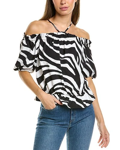 - Off-the-Shoulder Halter Top in new ivory with elasticized strappy off-the-shoulder neckline, elasticized cuffs, and elasticized peplum hem
